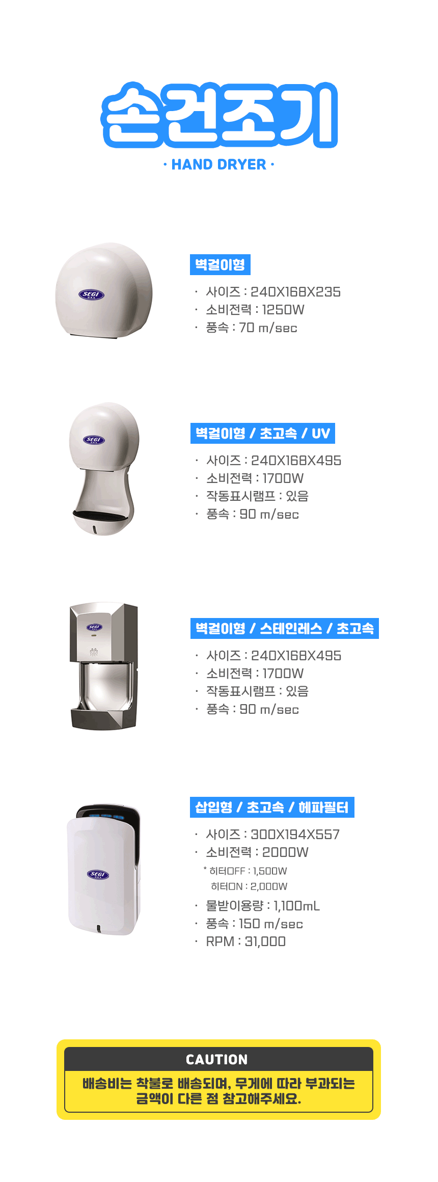 손건조기 핸드드라이어 4종 벽걸이형 삽입형