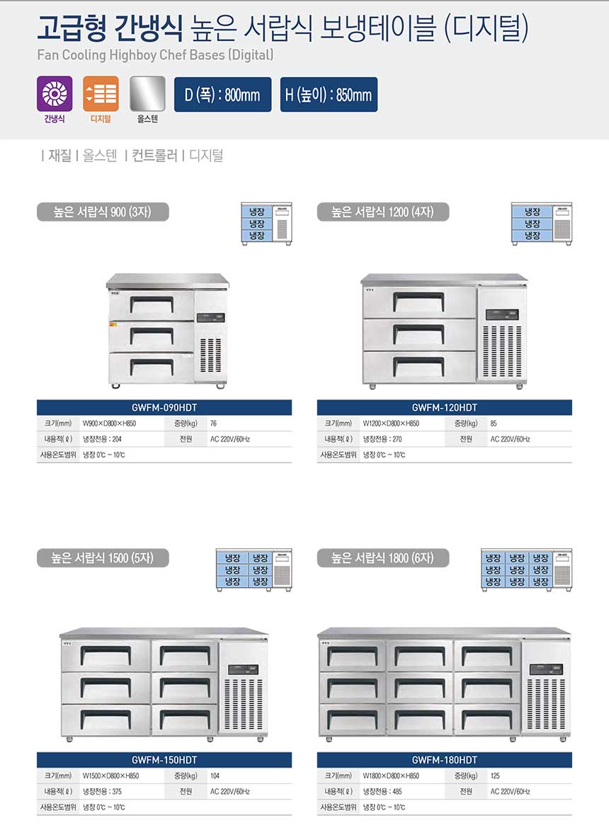 • 고급형 간냉식 높은 서랍식 800 보냉테이블