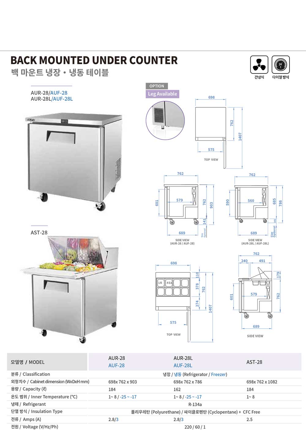 • 백 마운트 냉장/냉동 테이블 간냉식